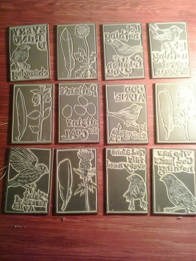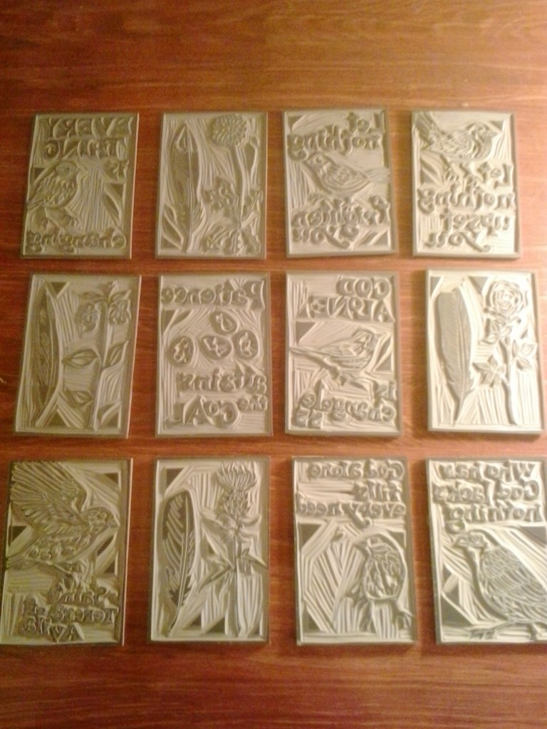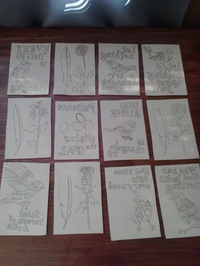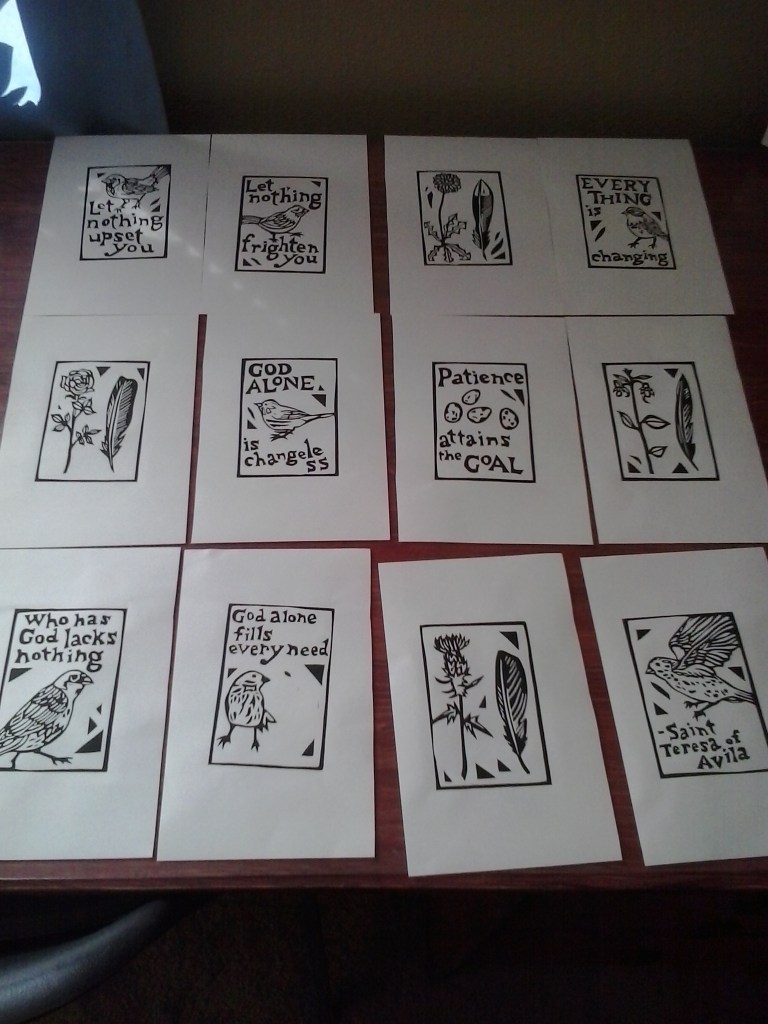Here is an illustration of St. Teresa of Avila’s prayer. I love this prayer and have been thinking about it a lot during these uncertain times. I have also included some photos of the process of making this series of prints.