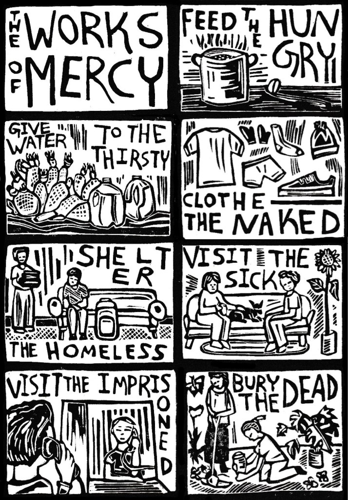 The Nation magazine used my linocut of the Works of Mercy to illustrate an article about the 90th anniversary of the Catholic Worker Movement!