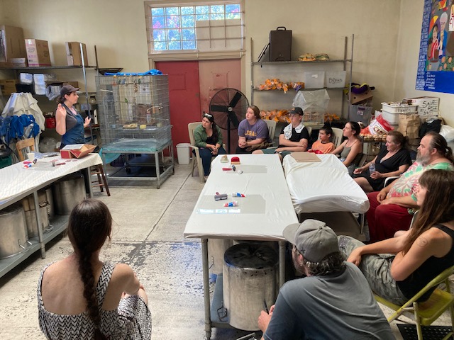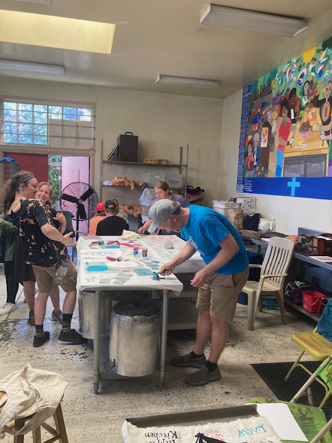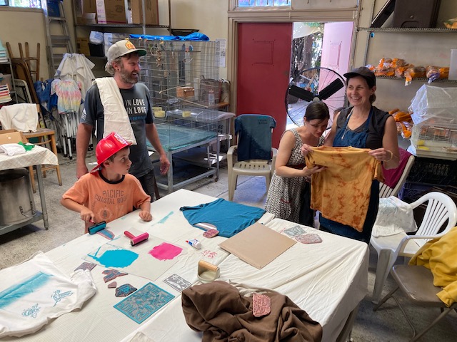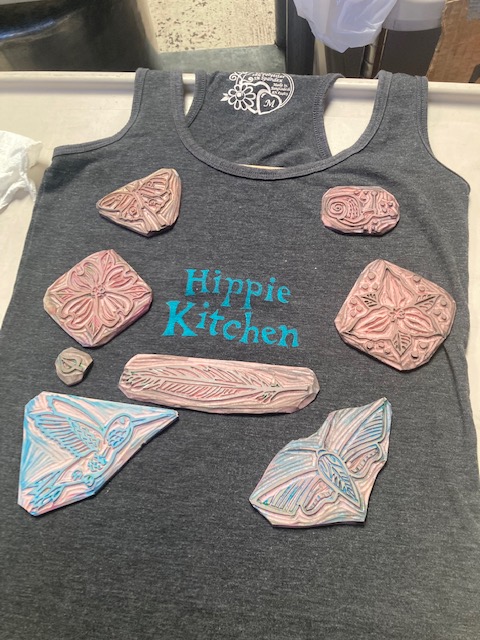 In July, as part of the Los Angeles Catholic Worker’s internship program, I was invited to give a workshop on fabric block printing at the Hippie Kitchen. It was a lot of fun!